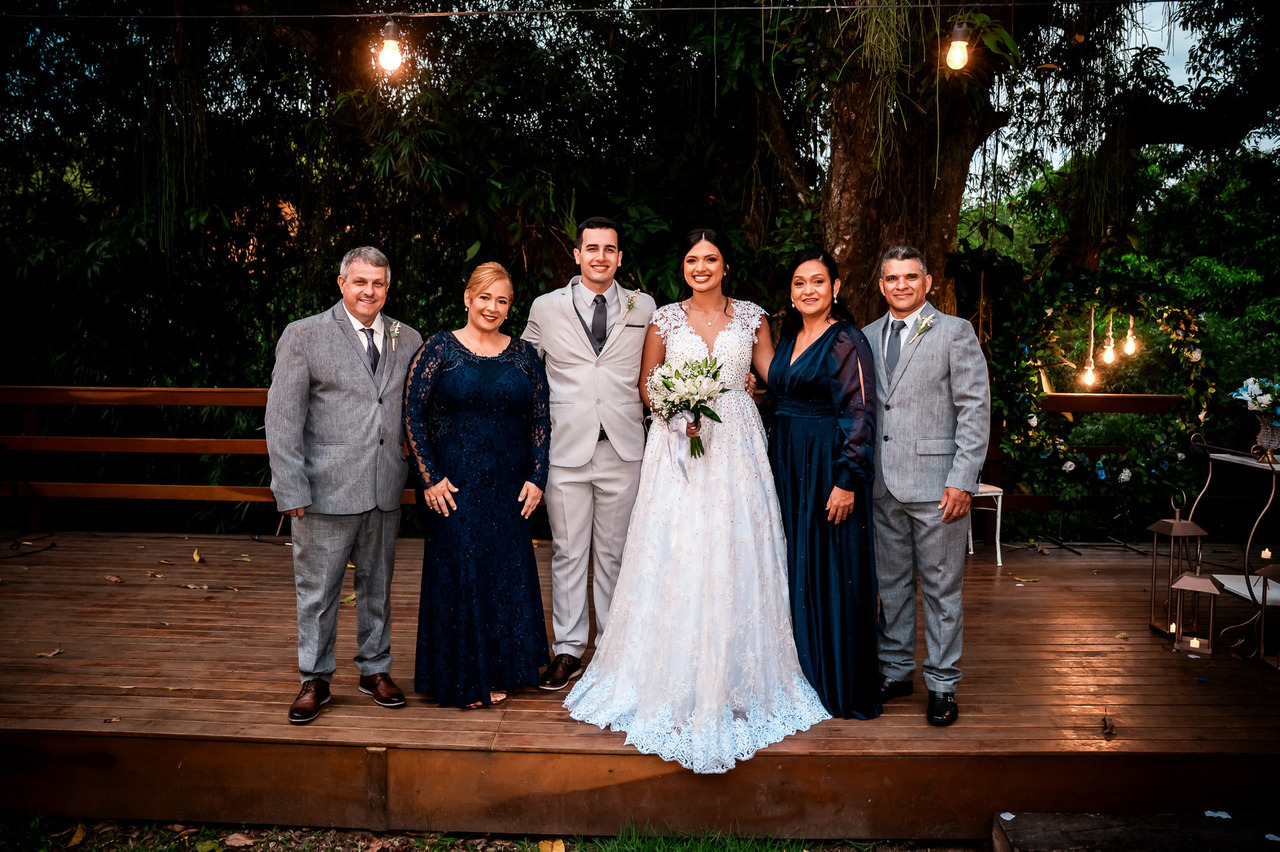 Organize previamente a lista de familiares essenciais. Realizar essas fotos logo após a cerimônia ajuda a otimizar tempo e manter todos confortáveis.